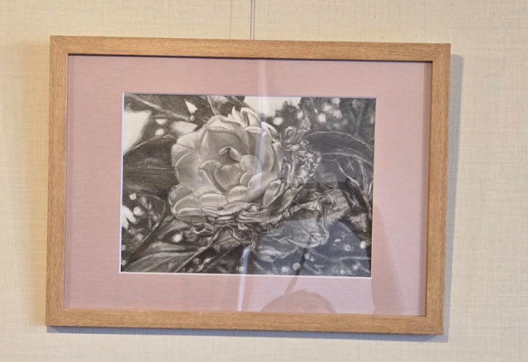 玉利さんの作品は、花や動物を題材にした温かみのある鉛筆画。